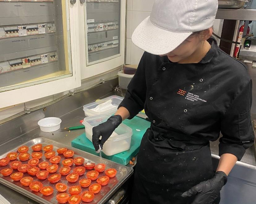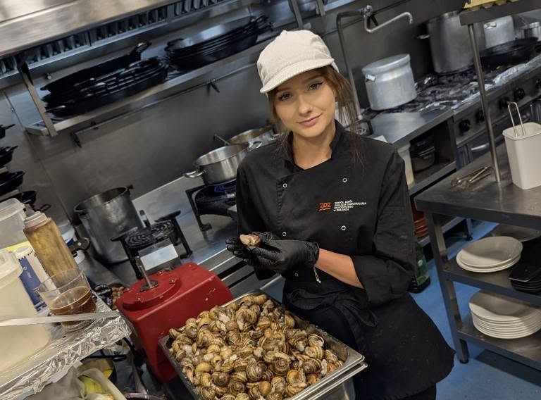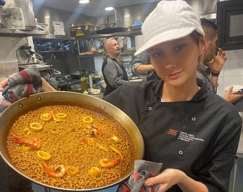 Martyna Komodołowicz, uczennica kierunku technik żywienia i usług gastronomicznych, odbywała swoje praktyki w klimatycznej restauracji La Principal w sercu Walencji. To miejsce, które łączy tradycję z nowoczesnością – kuchnia oparta na świeżych, lokalnych składnikach, sezonowym menu i pełna pasji ekipa. Martyna miała okazję obserwować rytm pracy hiszpańskiej kuchni od podszewki, pomagać w przygotowaniu dań, dbać o estetykę talerza i poznać organizację pracy zespołu. Zdobyła cenne umiejętności, których nie da się nauczyć w szkolnej sali!