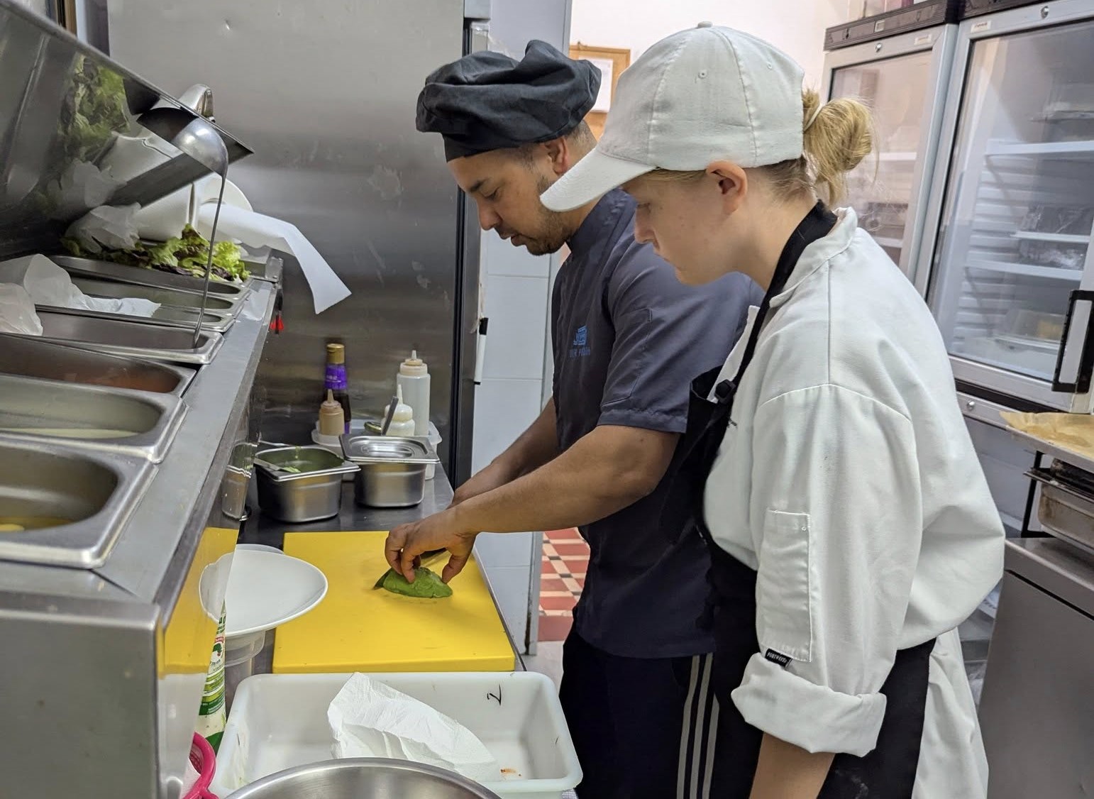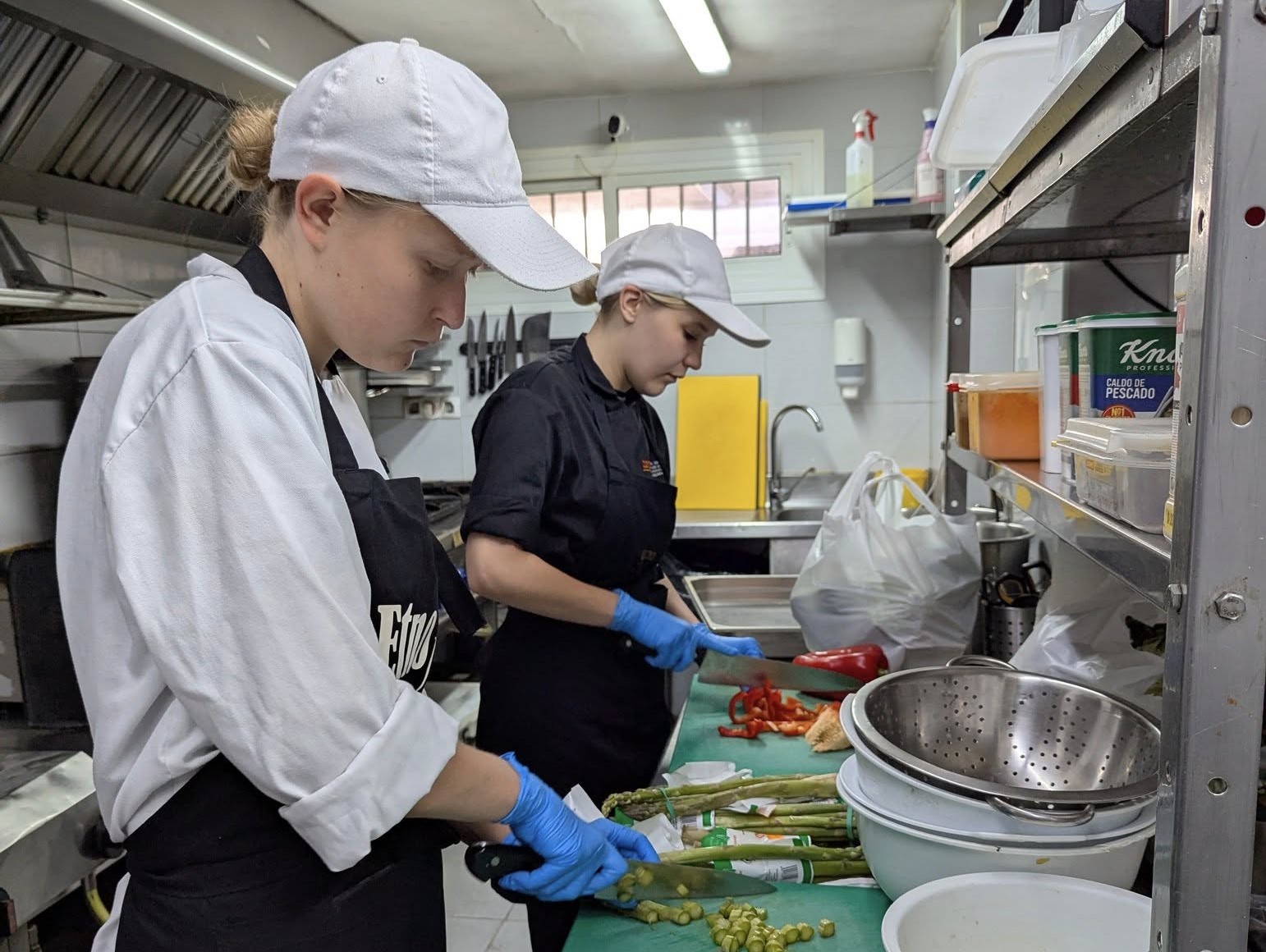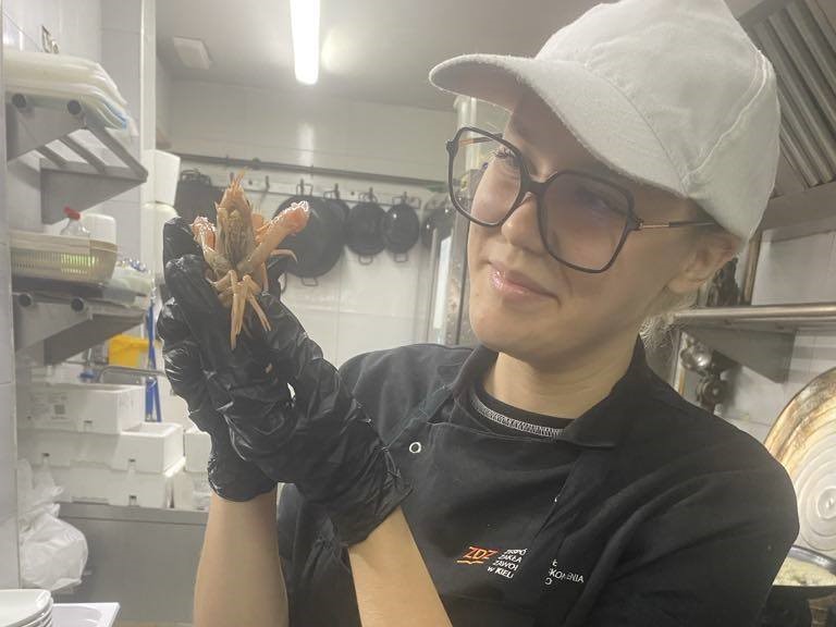 To już trzeci tydzień ich praktyk zawodowych w ramach programu FERS - Fundusze Europejskie dla Rozwoju Społecznego na zasadach ERASMUS+ nr przedsięwzięcia 2023-1-PL01-KA122-VET-000146920, które odbywają w renomowanej restauracji specjalizującej się w daniach z owoców morza. Dziewczyny z entuzjazmem dzielą się swoimi doświadczeniami, podkreślając przyjazną atmosferę w kuchni oraz możliwość pracy z różnorodnymi składnikami, takimi jak świeże ryby, kalmary czy krewetki.